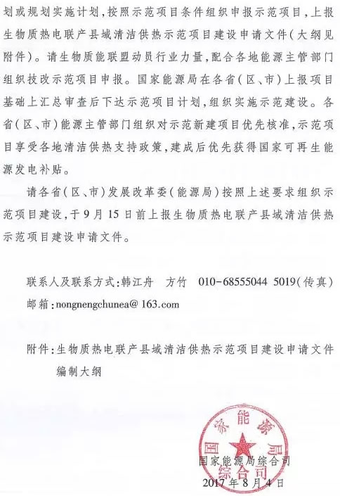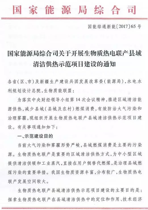 國家能源局正式發(fā)文啟動生物質(zhì)熱電聯(lián)產(chǎn)縣域清潔供熱示范項目申報工作 |